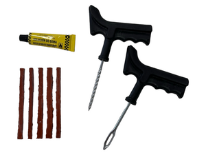 Eine günstigere Alternative sind die Reparatursets, die zwar kraftaufwendiger aber etwas sicherer und nachhaltiger sind. Sie bestehen aus einer kleinen Feile, einem Reifendichtmaterial und einem Einführwerkzeug.